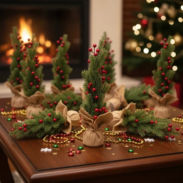 DEKORATİF MİNİ YAPAY KOKİNA SÜSÜrün ÖzellikleriDekoratif mini yapay kokina, 45 cm boyutuyla masa üstü dekorasyonlarda ve küçük alanlarda şık bir yeni yıl atmosferi oluşturmak için ideal bir üründür. Canlı yeşil çam dallarıyla birlikte tasarlanan kırmızı kokina detayları, alt kısmındaki keten kaplı saksı görünümü ise ağaca rustik ve sıcak bir tarz kazandırır. Dayanıklı yapay malzemeden üretildiği için her yıl tekrar kullanılabilir, şeklini uzun süre korur ve dökülme yapmaz. Ev, ofis, vitrin, kafe veya hediye amaçlı kullanımlarda dekoratif bir tamamlayıcı olarak öne çıkar.Paket İçeriği1 Adet Dekoratif Mini Yapay Kokina Süs