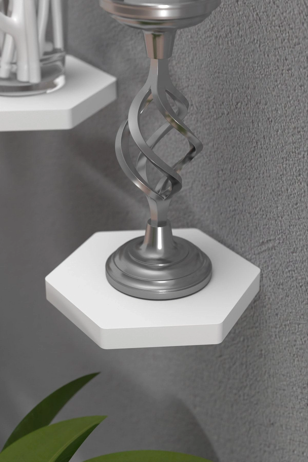 Duvar Rafı Dekoratif 3 Adet Çiçeklik Altıgen Beyaz