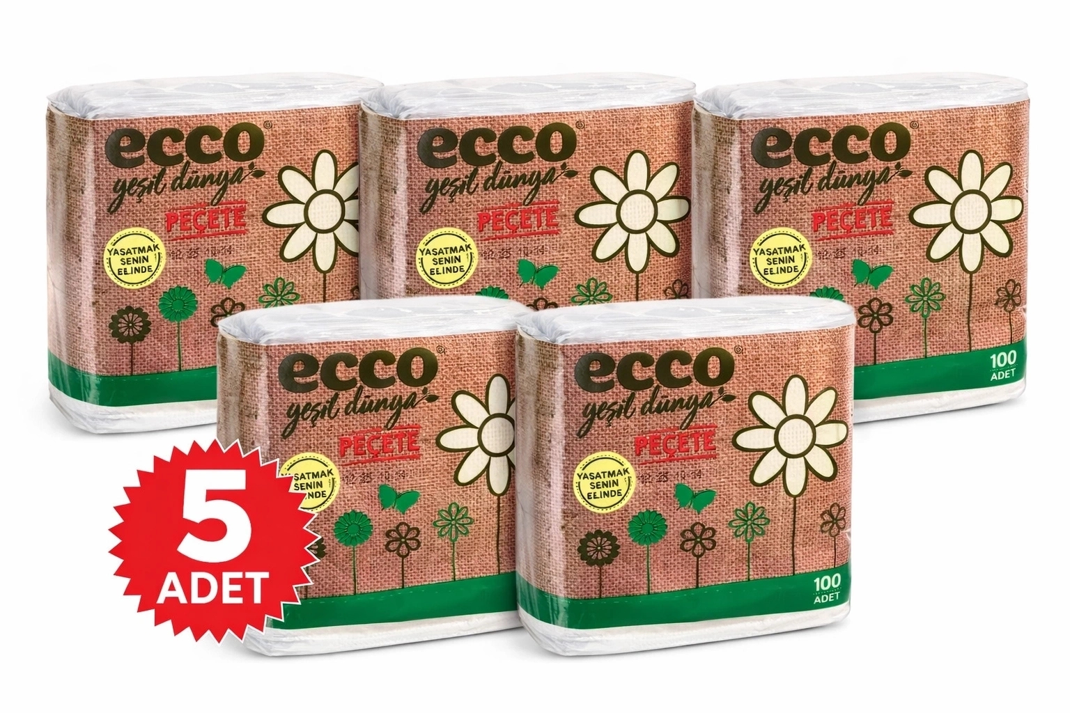 ecco green peçete 100’lü ecco green kağıt peçete 100 lü peçete 5 adet 5 li peçete paketi ekonomik kağıt peçete 23x25 cm peçete 5 li ekonomik peçete toplu tüketim peçete yerli üretim peçete europap tezol peçete