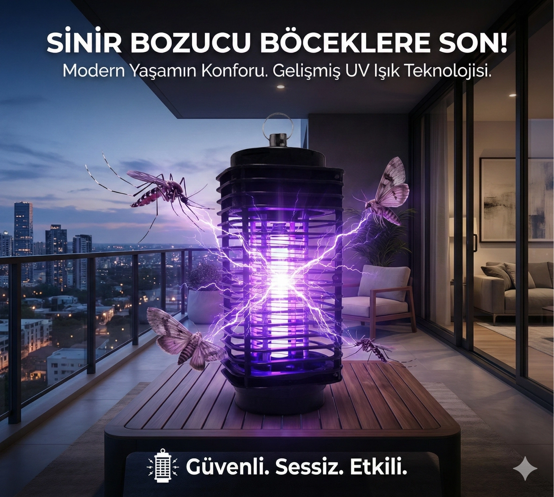 Özel ışığı sayesinde sivrisinek, karasinek, kelebek gibi haşereleri içine çeker