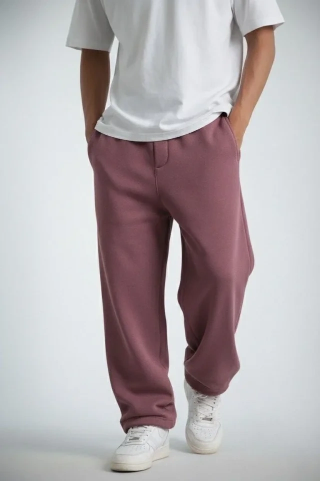 Erkek Baggy Alt Eşofman - Gül Kurusu