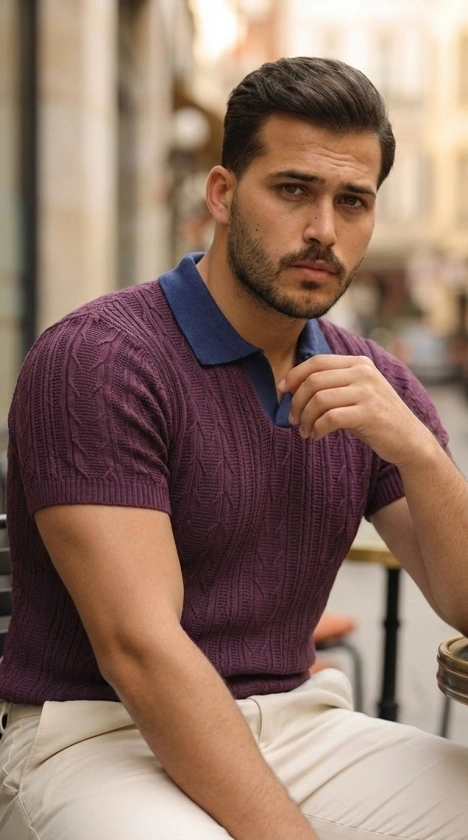 Erkek Desenli Kısa Kollu Triko Tişört - %100 Pamuk Akrilik