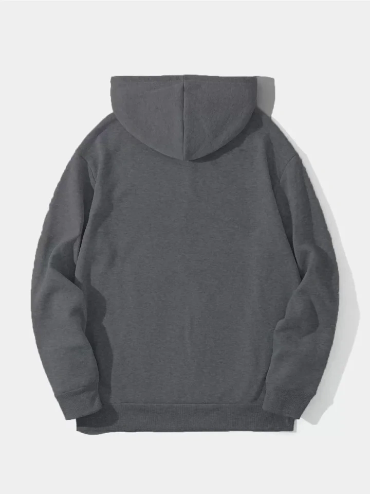 Erkek Baskılı Kapüşonlu Ve Kanguru Cepli Sweat- Gri