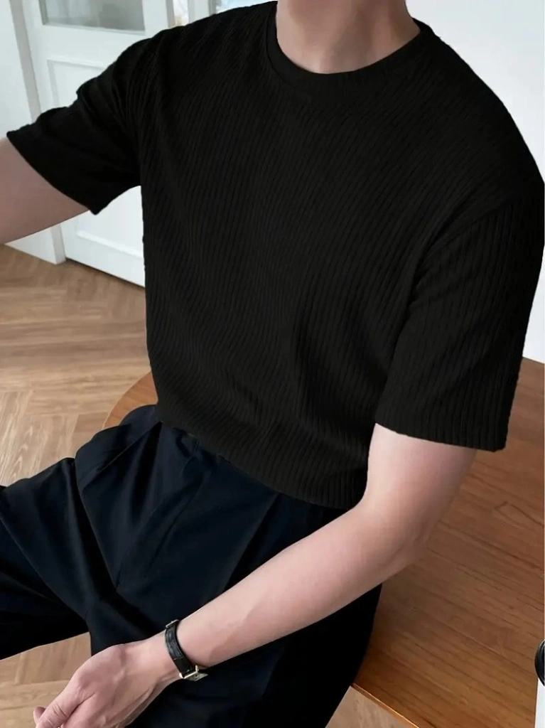 Erkek Kısa Kollu Bisiklet Yaka Triko Tişört