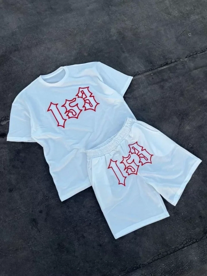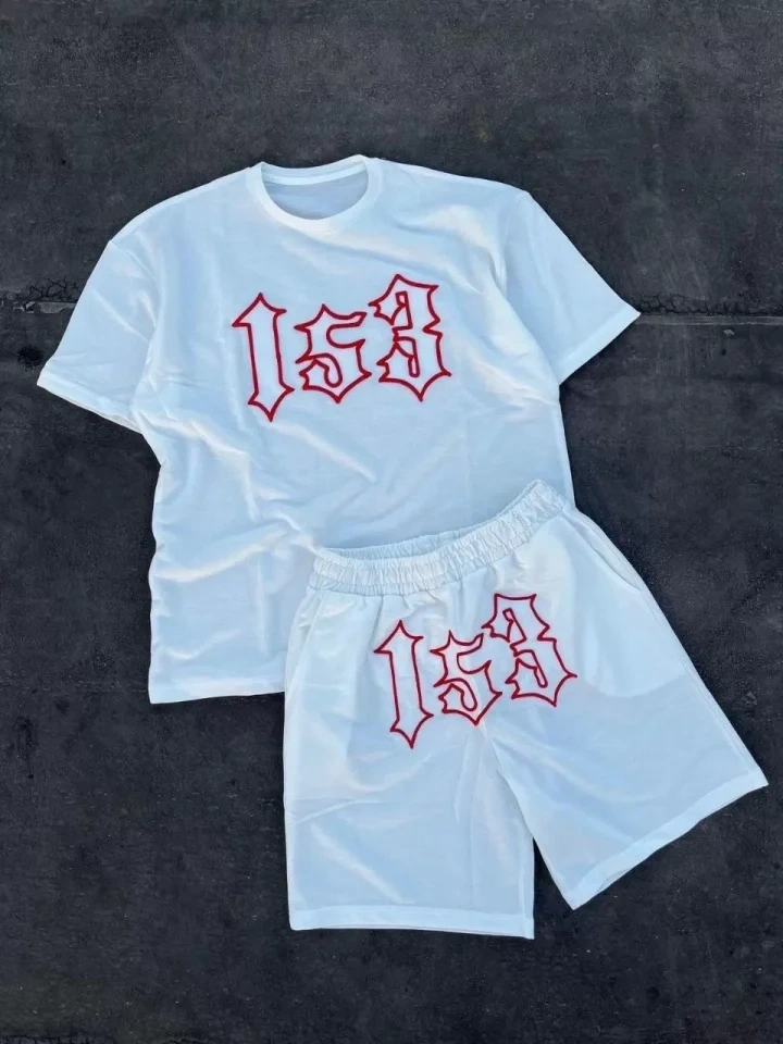 Erkek Oversize Ön Ve Arka Baskılı Tişört Şort Takım Rahat Kalıp Yazlık Günlük Kombin - Beyaz