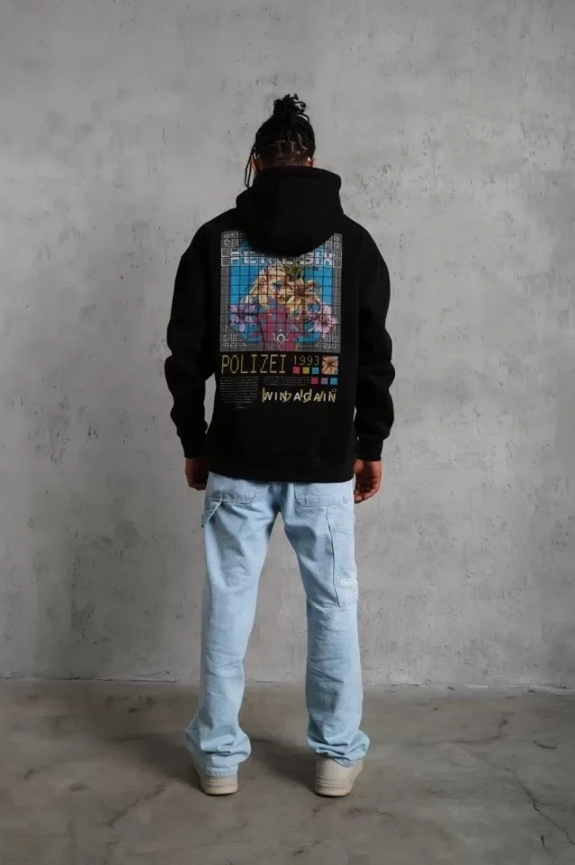 Erkek Patel Six Baskılı Kapüşonlu Sweat - Siyah