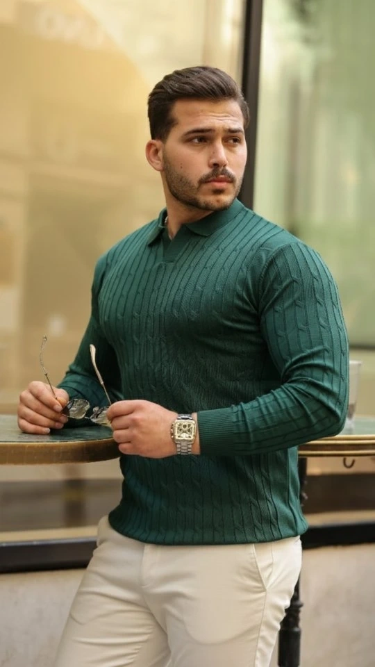 Erkek Saç örgü Desen Uzun Kollu Triko