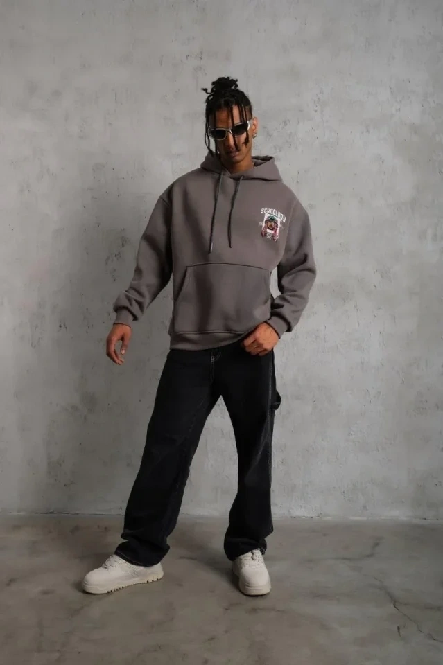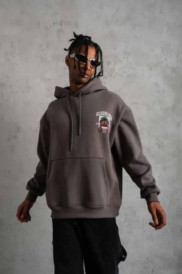 Erkek SCHOOL BOY Baskılı Kapüşonlu Sweat - Gri
