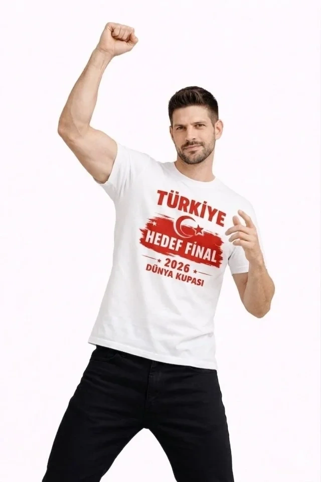 Erkek Türkiye World Cup 2026 Baskılı Tişört Futbol Temalı Forma T-Shirt - Beyaz