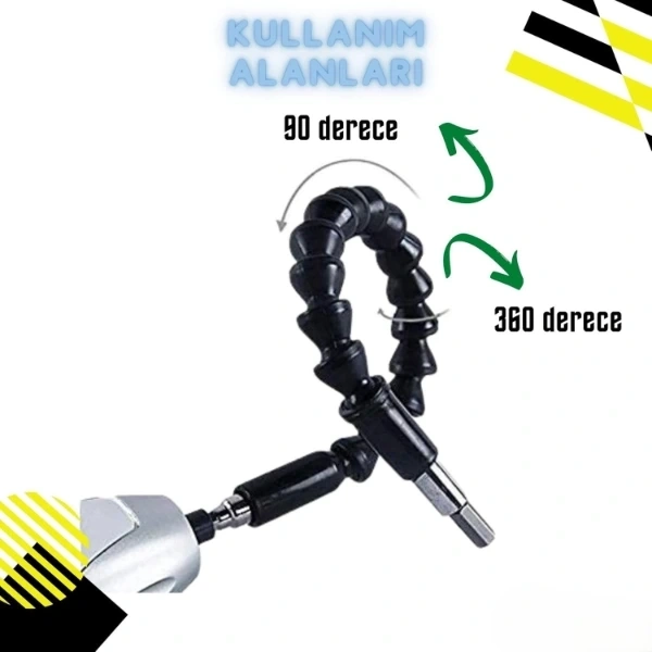 ESNEK ŞAFTLI TORNAVİDA UCU SETİÜrün ÖzellikleriEsnek şaftlı tornavida ucu seti, Phillips (Yıldız), düz uçlu, Torx (Yıldız-çentikli), Hex (Altıgen) gibi çeşitli uç tipleriyle farklı vida başlıklarına uyum sağlar. PH, H, T, SL gibi uç tipleriyle geniş bir kullanım alanı sunar. Esnek uzatma aparatı, ulaşılması zor yerlerde vidalama yapmanıza imkan tanır (örneğin mobilya köşeleri, dar alanlar gibi). Uç kısmı manyetiktir, böylece vida uçları kolayca tutturulur ve düşmez. Elektrikli matkap, vidalama makinesi veya manuel tornavida ile uyumludur. Evde tamir işleri, mobilya montajı, elektronik cihaz açma işlemleri için oldukça kullanışlıdır. Esnek şaftı 360 derece bükülebilir, bu da sert açılarda rahat çalışmanızı sağlar.Paket İçeriği1 Adet Esnek Şaftlı Tornavida Ucu Seti