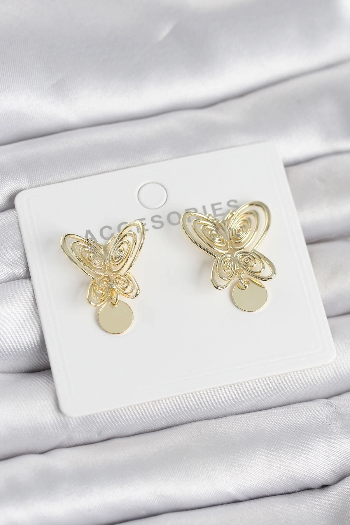 Füsun Küpesi Model Gold Renk Kelebek Model Pirinç Kadın Küpe