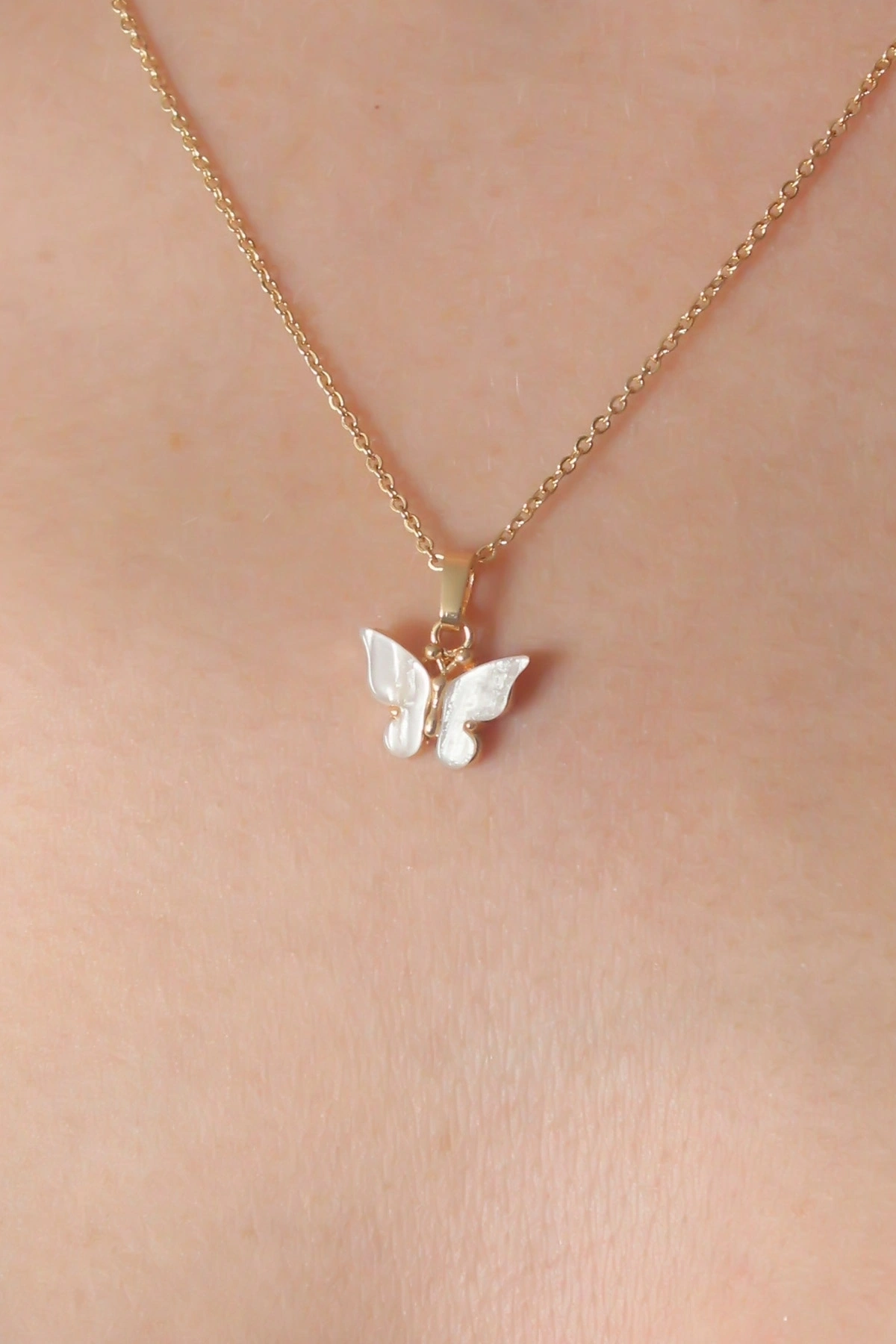 Gold Beyaz Renk Kelebek Figür Kadın Kolye