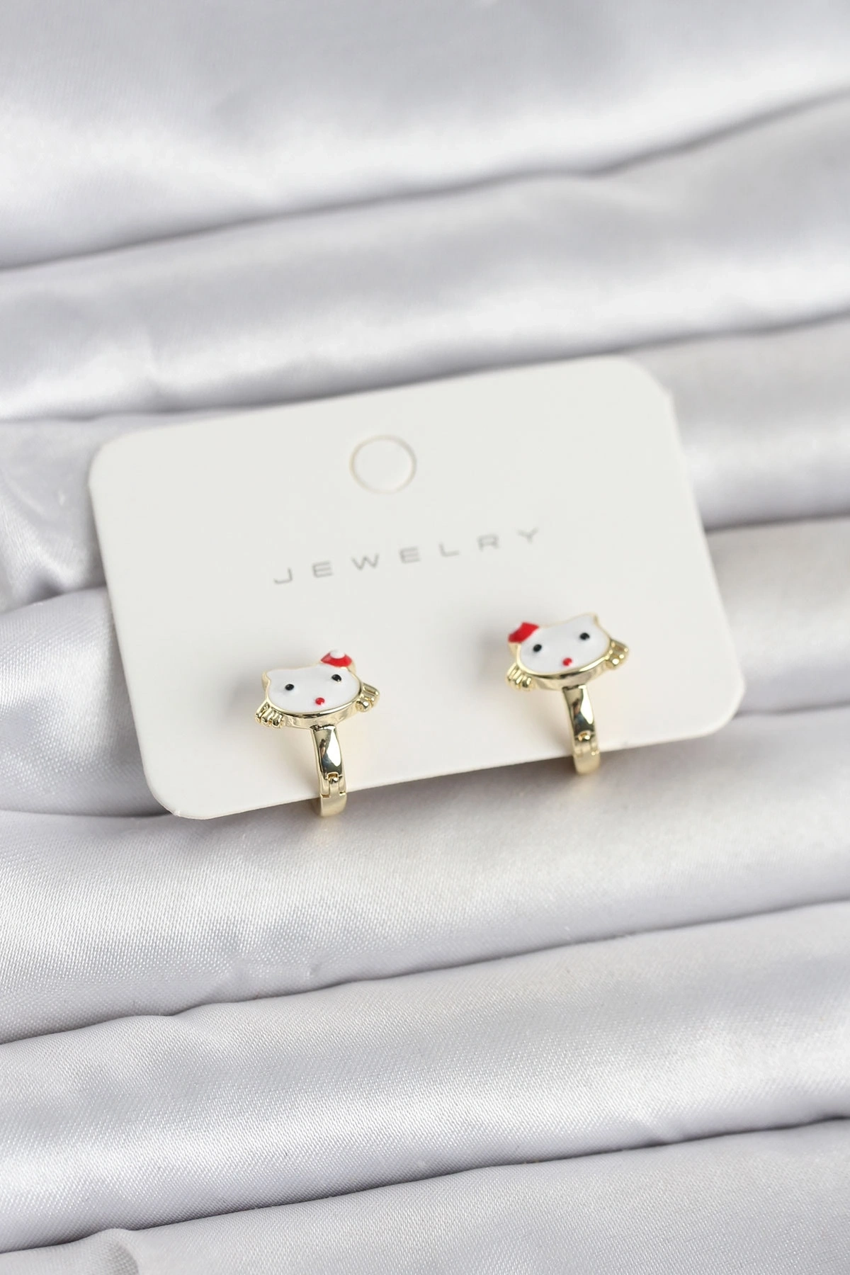 Gold Renk Kedi Model Mineli Çocuk Küpe