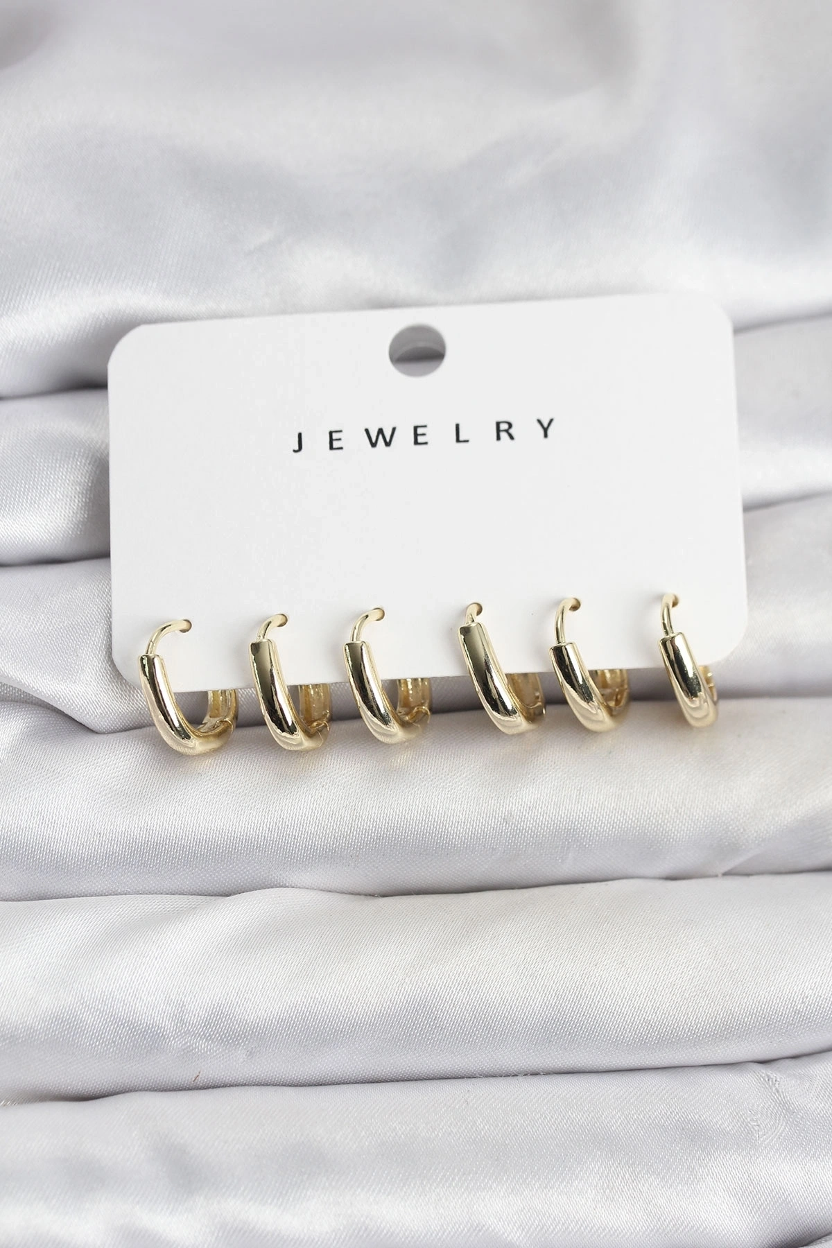 Gold Renk Pirinç Halka Kadın Küpe Seti