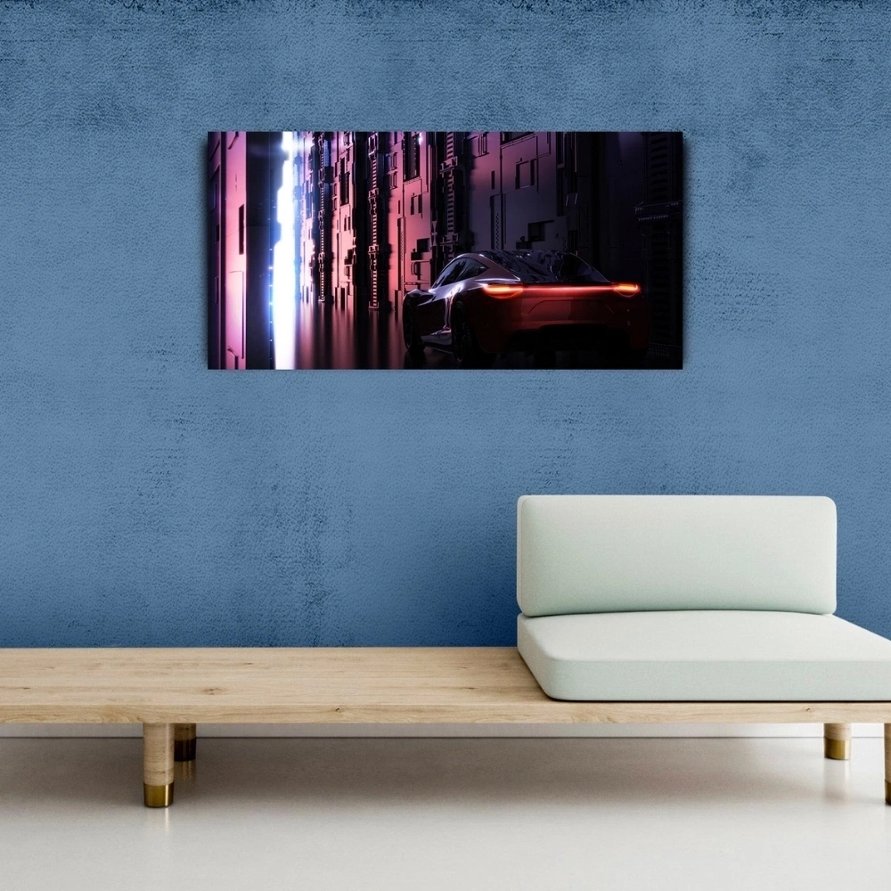 Gri Spor Araba Retro Kanvas Tablo 60 x 120