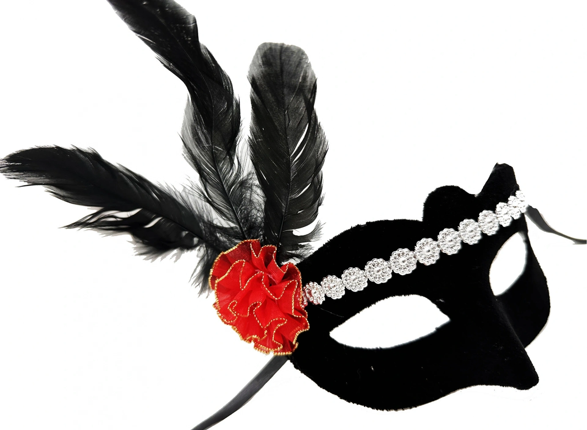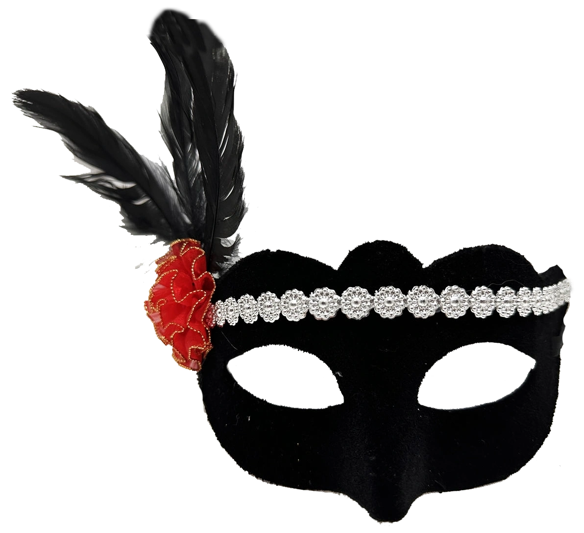 Gümüş Dantelli Kırmızı Gül Tasarımlı Parti Maskesi
