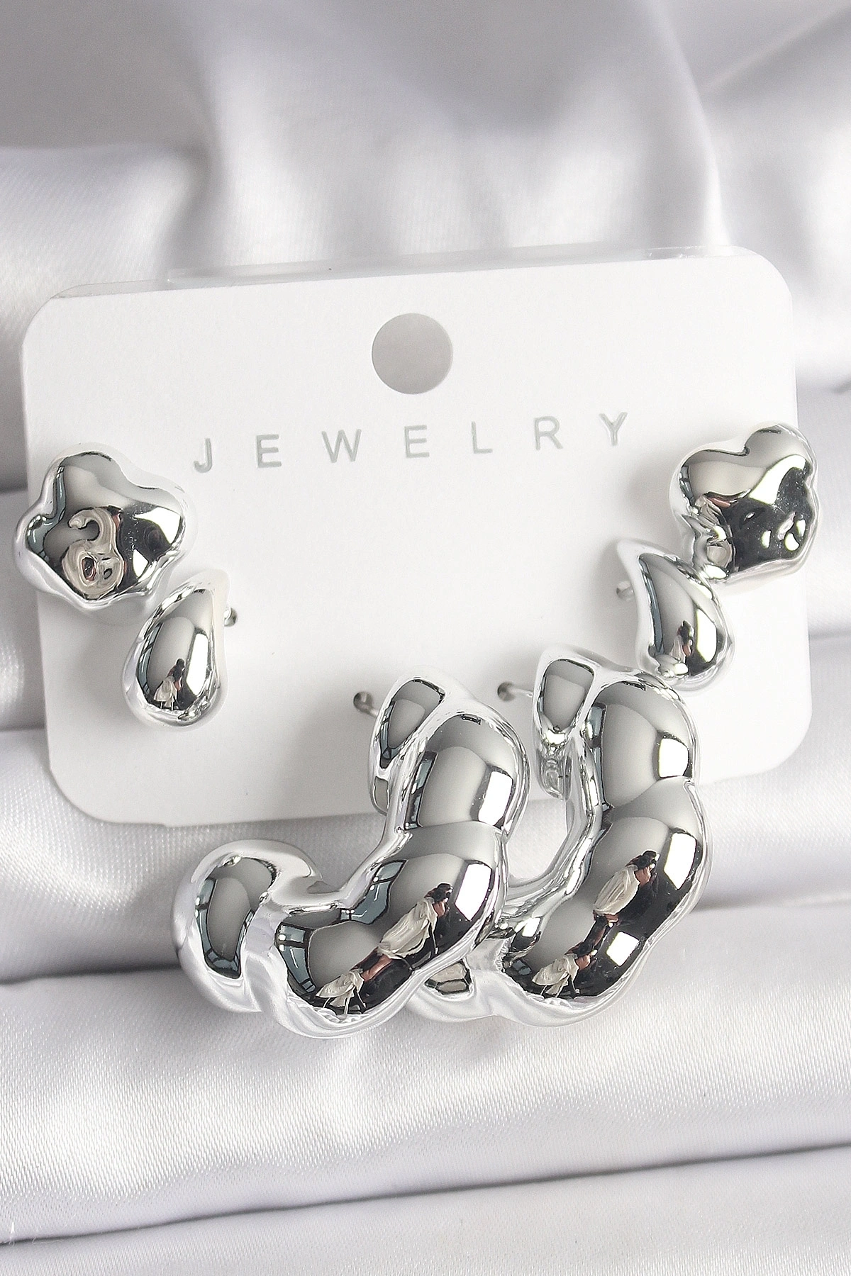 Gümüş Renk Yonca Damla Halka Model CCB Plastik Kadın Küpe Seti