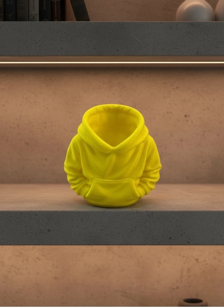 Sarı hoodie kalemlik, masa üstü düzenini sağlarken dekoratif bir görünüm sunan şık ve eğlenceli bir aksesuardır. 10x10 cm ölçüsü sayesinde çalışma masası, raf veya kitaplık üzerinde rahatlıkla kullanılabilir. Hoodie formundaki tasarımı, ürünü sıradan kalemliklerden ayırarak özgün bir tarz ortaya koyar.Canlı sarı tonu, bulunduğu alana sıcak ve enerjik bir hava katar. Evde çalışma alanlarında, ofis masalarında veya öğrenci odalarında rahatlıkla tercih edilebilir. Kalem, silgi ve küçük ofis gereçlerini düzenli şekilde saklamaya yardımcı olurken masa üstünde estetik bir detay oluşturur.Dekoratif yapısı sayesinde yalnızca işlevsel bir kalemlik değil, aynı zamanda masa düzenini tamamlayan bir obje olarak da kullanılabilir. Küçük boyutları sayesinde dar alanlarda bile yer bulur ve düzenli bir görünüm sağlar.Dayanıklı yapısı ile günlük kullanıma uygundur. Masa üstüne renk ve hareket katmak isteyenler ya da farklı tasarımlara sahip masa aksesuarları arayanlar için ideal bir üründür. Hem kendiniz için hem de sevdiklerinize eğlenceli bir hediye olarak tercih edilebilir.