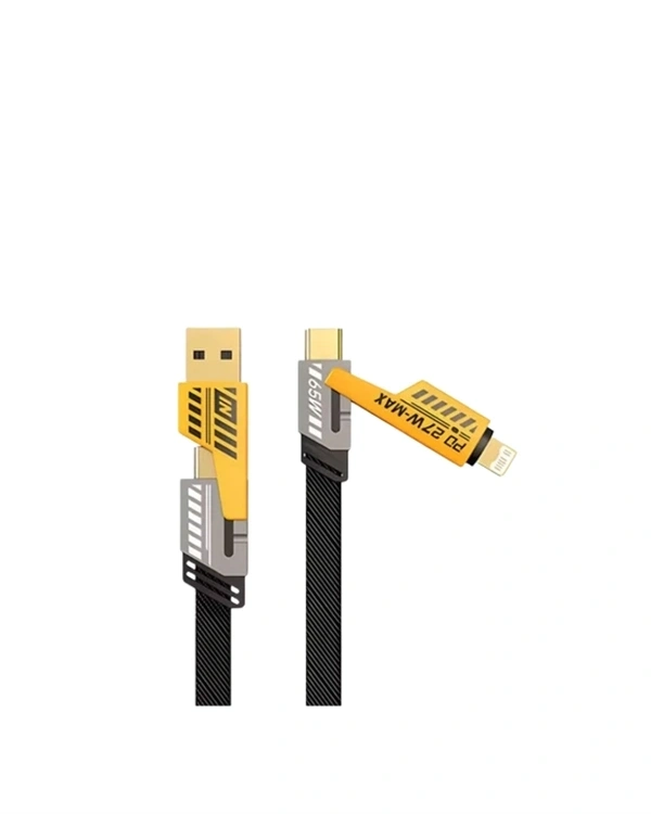 Modern teknolojiye uyum sağlayan bu 4’ü 1 arada USB şarj kablosu, USB-A ve USB-C girişlerini, Lightning ve USB-C çıkışlarıyla bir araya getirerek birçok farklı cihazı aynı anda şarj etme imkânı sunar. Yüksek hızlı şarj (65W) ve veri aktarım (480 Mbps) özellikleri sayesinde enerji verimliliğini artırır. Dolaşmayan, düz örgülü dış kaplama sayesinde uzun süreli kullanımda bile kablo dayanıklılığını korur. Akıllı voltaj koruma sistemi sayesinde cihazlarınız aşırı akımdan ve ısınmadan korunur. İster evde, ister ofiste, ister seyahatte olsun, tüm cihazlarınız için pratik ve güvenli bir bağlantı çözümüdür.
