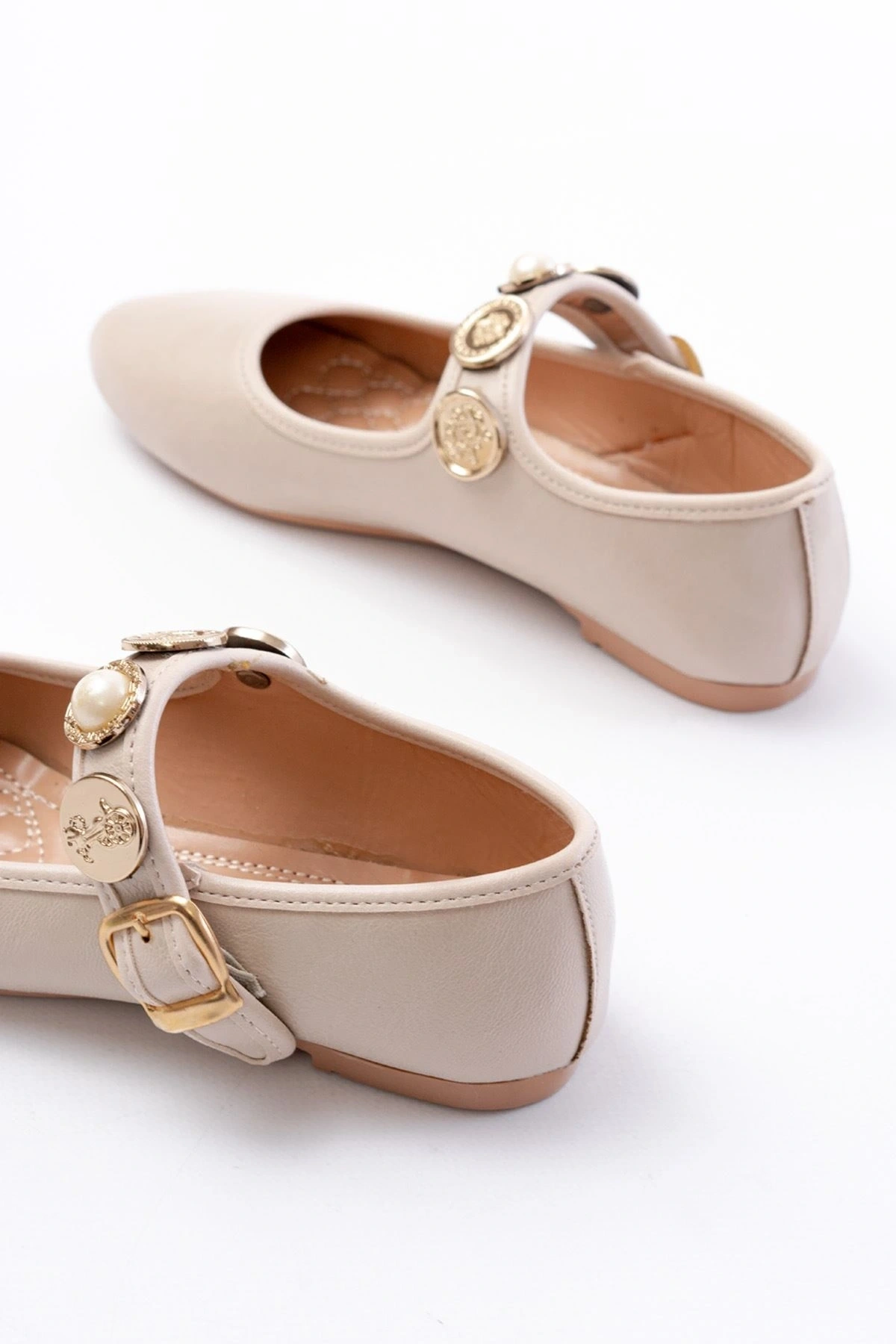 İNF-6363 Bej Baret Tokalı Günlük Bayan Ayakkabı