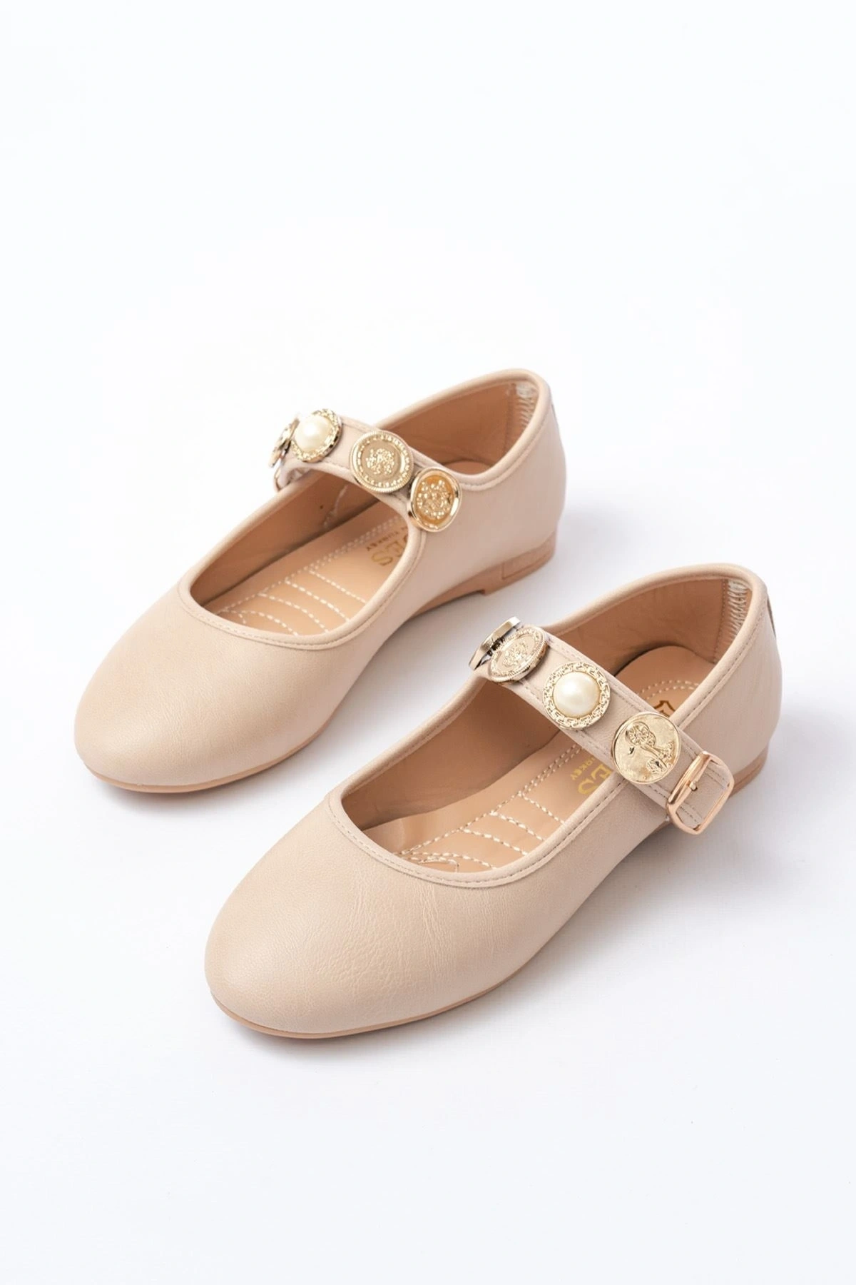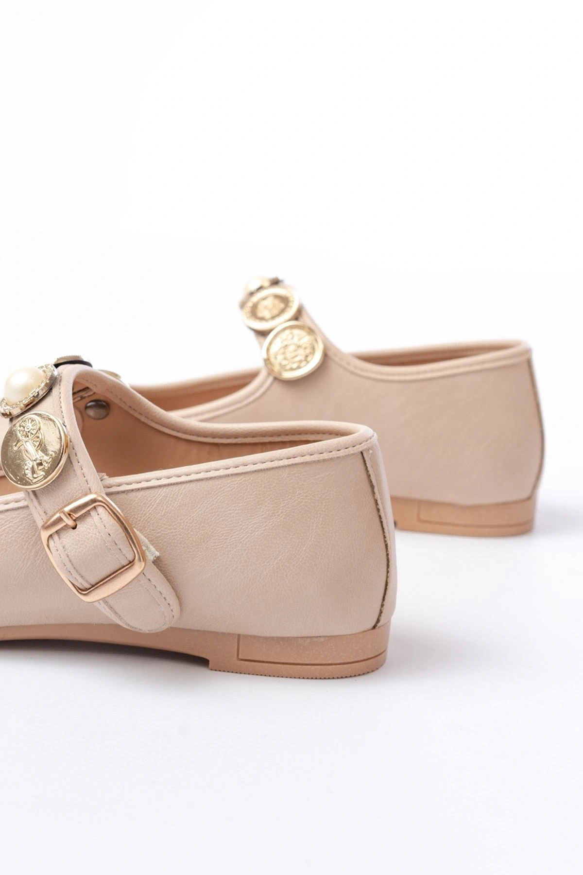 İNF-6363 Bej Baret Tokalı Günlük Bayan Ayakkabı