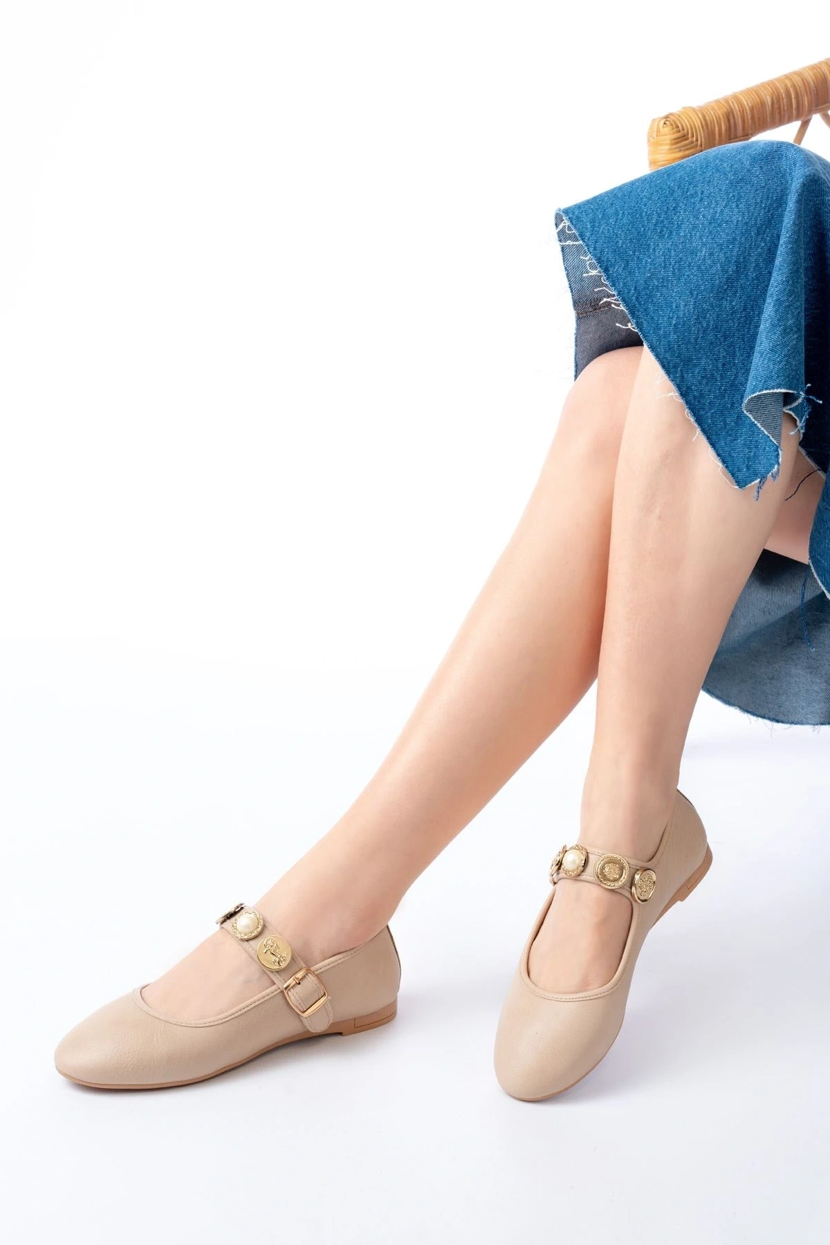 303 Bej Toka Aksesuarlı Günlük Kadın Babet