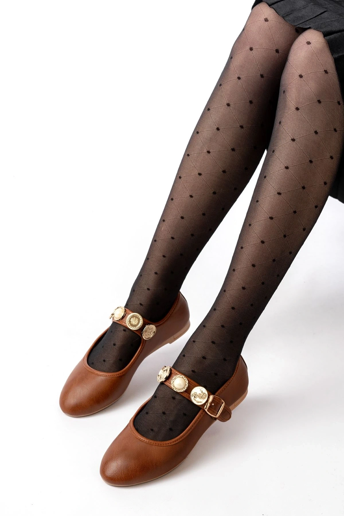 7432 Siyah Fileli Toka Detaylı Günlük Kadın Babet