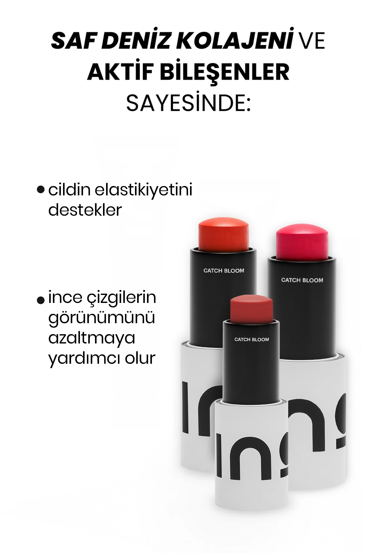 Catch Bloom ile sağlıklı, doğal ve ışıltılı bir görünüm elde edebilir; kolay kullanım ve çok yönlü avantajlarla makyaj rutininizi pratik bir şekilde tamamlayabilirsiniz.