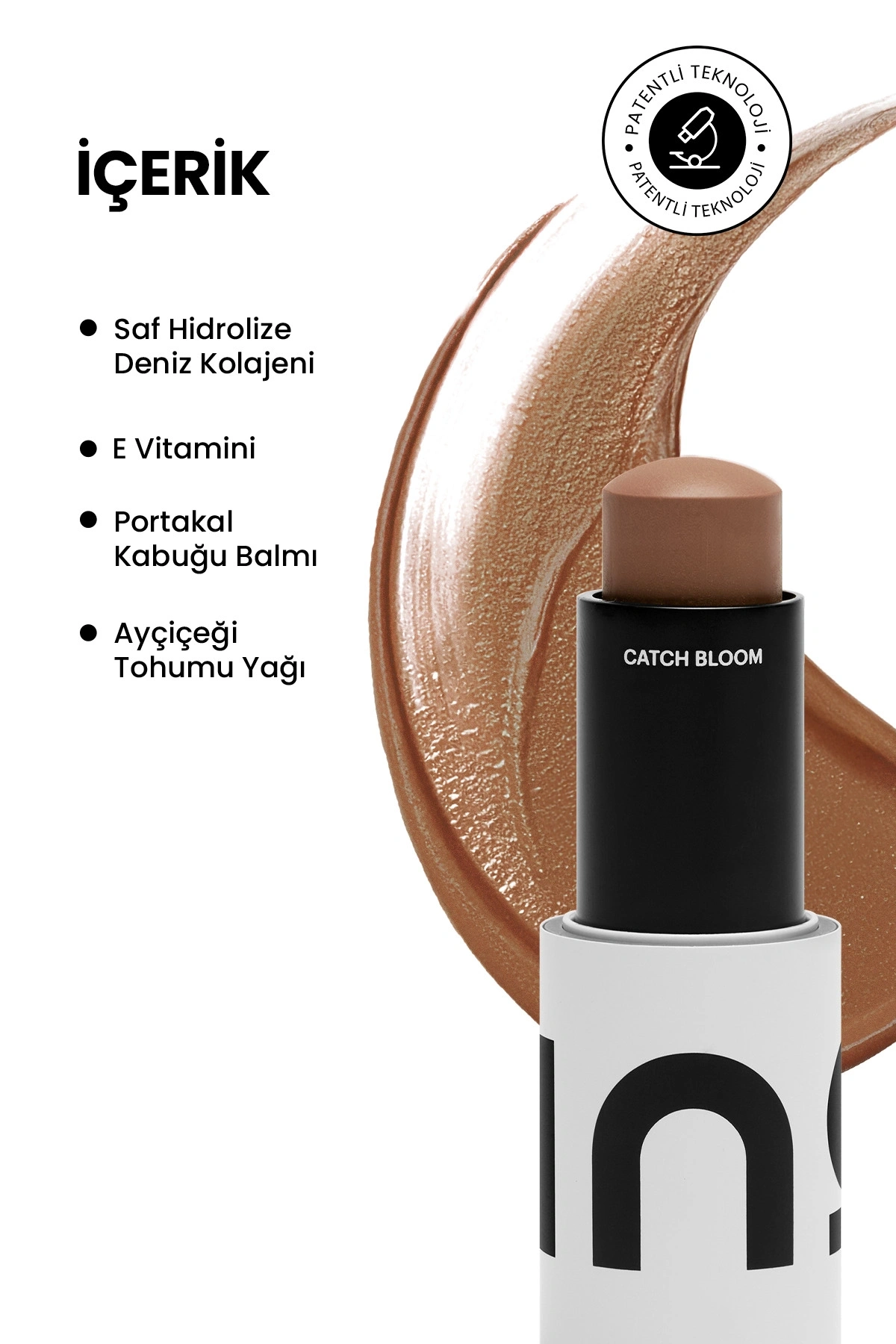Catch Sculpt Bronzer Stick - Sand, cilt bariyerini onarmaya yardımcı olur, bronz ve doğal kontur etkisiyle yüz hatlarını belirginleştirir. Cildin elastikiyetini artırırken, daha pürüzsüz ve genç görünüm elde edilmesine katkı sağlayarak, yaşlanma belirtilerini azaltmaya yardımcı olur.