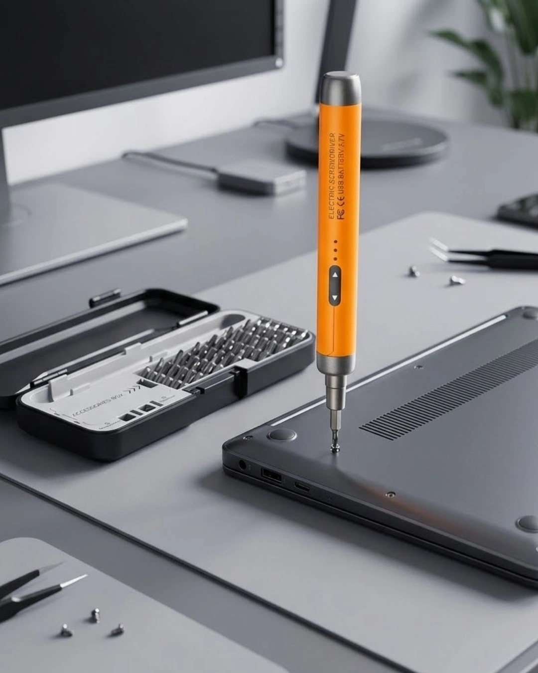 Kablosuz şarjlı elektrikli tornavida seti, hassas elektronik tamir işlemleri için özel olarak tasarlanmış profesyonel bir çözümdür. Kompakt ve ergonomik yapısı sayesinde hem teknik servis uzmanları hem de bireysel kullanıcılar için ideal bir kullanım sunar. Alüminyum alaşımlı sap tasarımı hem dayanıklılık hem de hafiflik sağlar. Uzun süreli çalışmalarda el yorgunluğunu minimum seviyeye indirir.3.7V DC gerilimle çalışan Li pil sistemi, 600mAh batarya kapasitesi sayesinde güçlü ve stabil performans sunar. Type-C şarj arayüzü ile hızlı ve pratik şekilde şarj edilebilir. İleri ve geri dönüş özelliği sayesinde vidalama ve sökme işlemleri zahmetsiz şekilde yapılır. 1100 devir/dak serbest hız değeri, küçük ve hassas vidalarda maksimum verimlilik sağlar.3.0-3.5 kgf.cm elektrik tork gücü, elektronik cihazların içindeki mikro vidalar için ideal seviyededir. CRV tornavida uçları dayanıklılığı ve uzun ömürlü kullanımı garanti eder. Set içerisinde 38 farklı tornavida ucu bulunur. Ayrıca mıknatıslanma ve manyetiklik giderme parçaları sayesinde vidalar üzerinde maksimum kontrol sağlanır.Cep telefonları, dizüstü bilgisayarlar, kameralar, saatler, oyun konsolları (PS5, Xbox, Switch) ve diğer hassas dijital ürünlerin onarımında güvenle kullanılabilir. Profesyonel bir teknik servis deneyimini ev ortamına taşıyan kapsamlı bir tamir setidir.