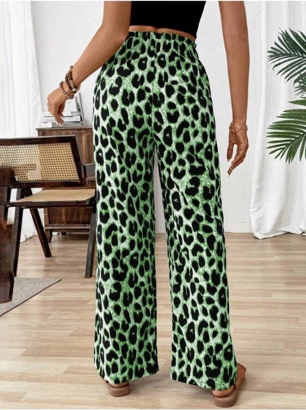 Kadın Beli Lastikli Leopar Desen Süprem Pantolon