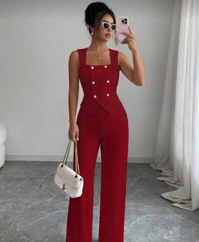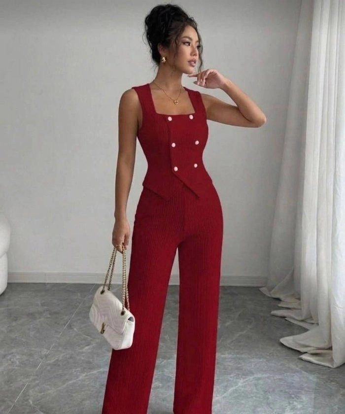 Kadın Düğmeli Bürümcük Kumaş Takım