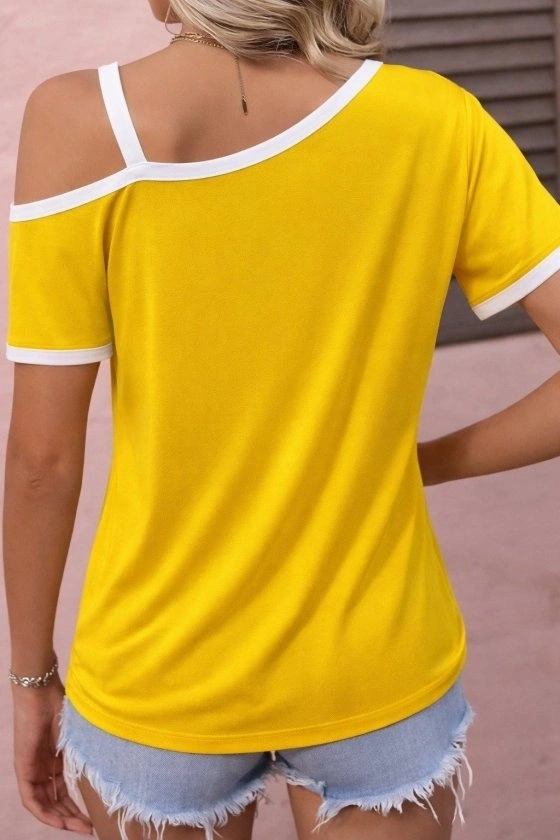 Kadın Kısa Kollu Tek Omuzu Açık Askı Toka Detaylı Viskon Bluz