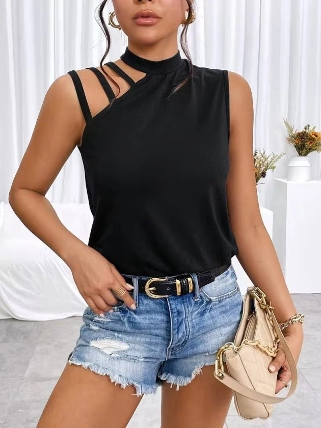Kadın Omuzdan şerit Detaylı Yarı Balıkçı Yaka Viskon Bluz