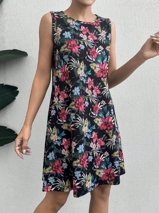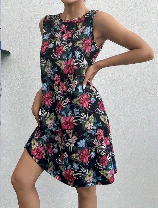 Kadın Renkli çiçek Baskılı Süprem Elbise