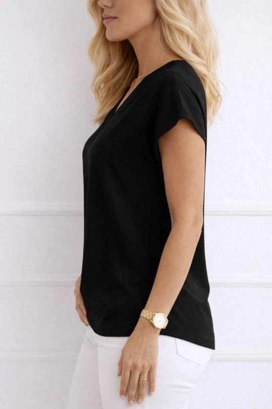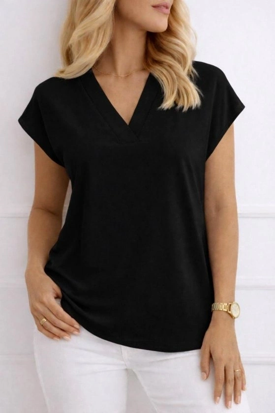Kadın V Yaka Kısa Kol Dokuma Viskon Kumaş Bluz