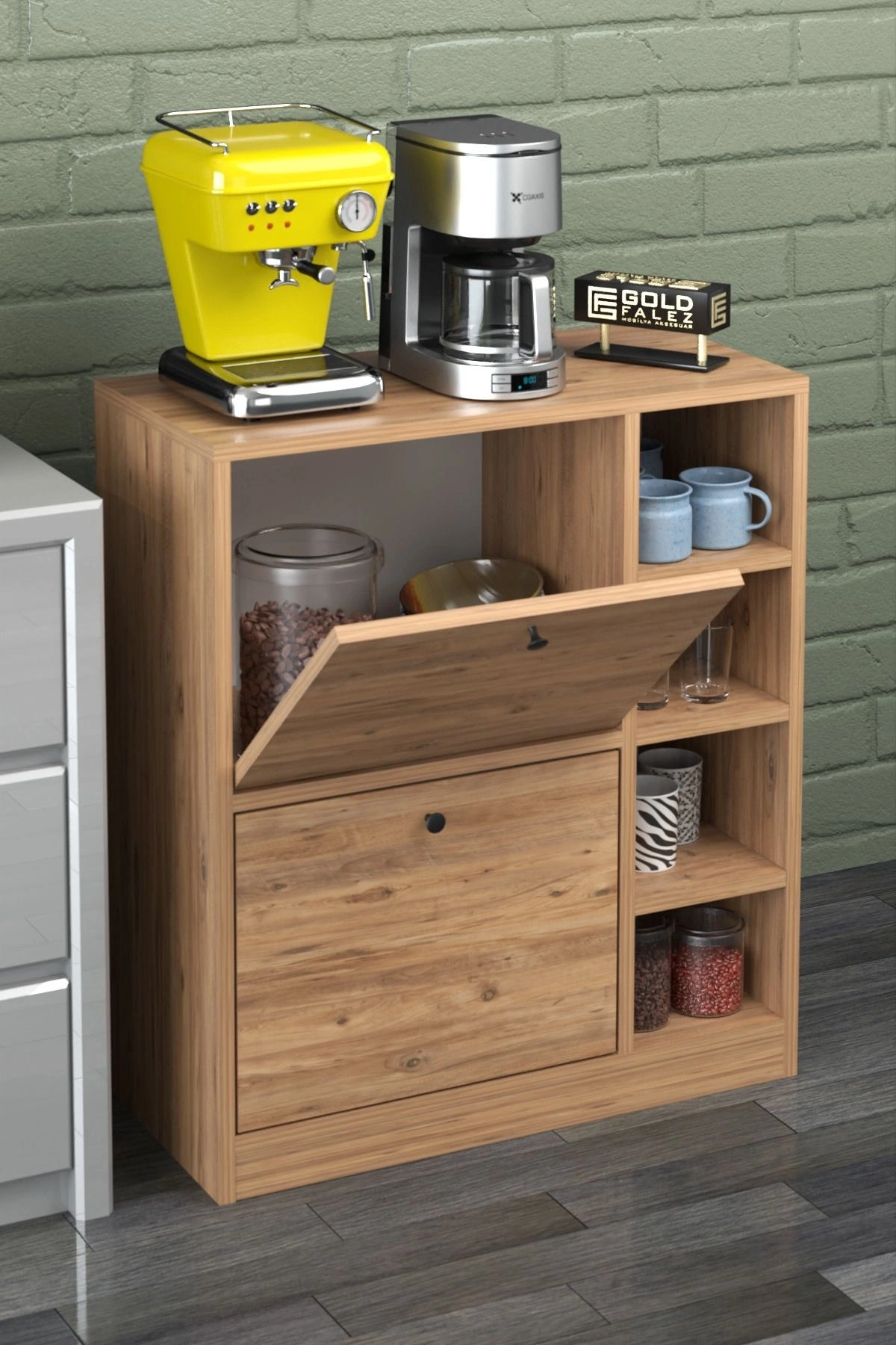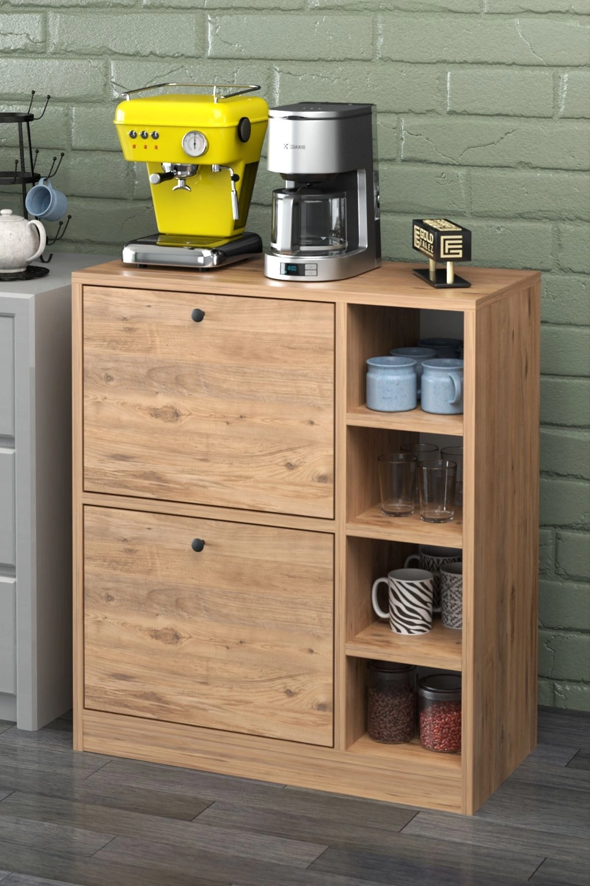 •Ürünümüz 1.kalite yonga levdadır. ; •Görsel ile birebir aynı gönderim sağlanmaktadır. ; •2 kapaklı ve 4 raflıdır •Mutfakta kahve köşesi, banyoda havlu vb, salonda aksesuar standı ve düzenleyici olarak kullanabileceginiz çok amaçlı bir üründür. ; •Ürün ölçüleri: •Yükseklik:80 cm •En:70 cm •Yan küçük raflar derinlik: 33 cm *yan küçük raflar en 20 yükseklik 17 cm •Not: Üzerindeki aksesuarlar dahil değildir •1.kalite dopel kolide gönderim sağlanmaktadır. ; •Kargo kaynaklı hasar alma durumunda ücretsiz değişim ve iade imkanınız mevcuttur. ; •Ürün sizlere demonte olarka göndeirm sağlanmaktadır. ; Kurulumu sizlere aittir. ; •Paket içerisinde kurulum için montaj parçaları ve şeması bulunmaktadır.;