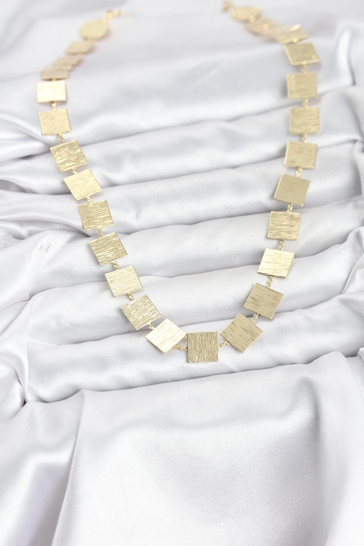 Kare Plaka Model Gold Renk Kadın Kolye