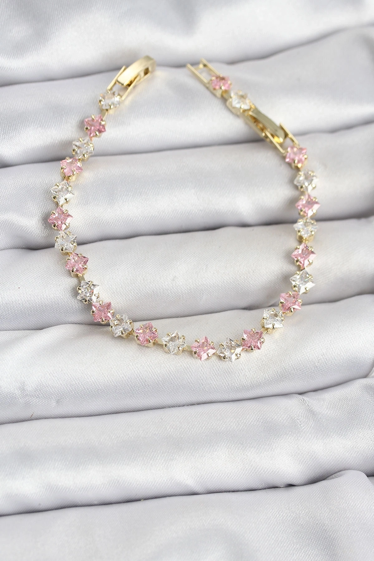 Kare Zirkon Taşlı Gold Renk Kadın Bileklik