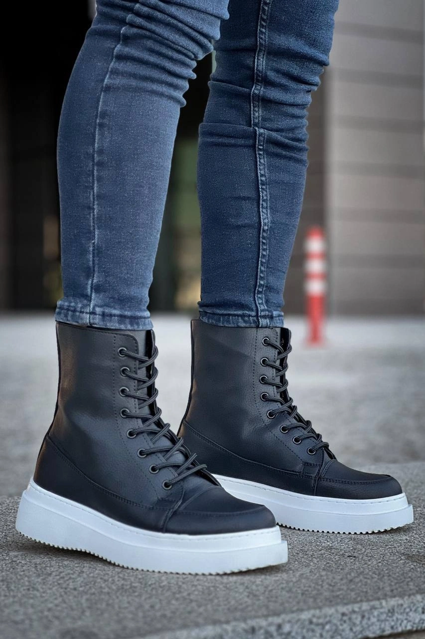 KB-0991 Kuback Siyah Cilt Yüksek Taban Bağcıklı Postal Bot