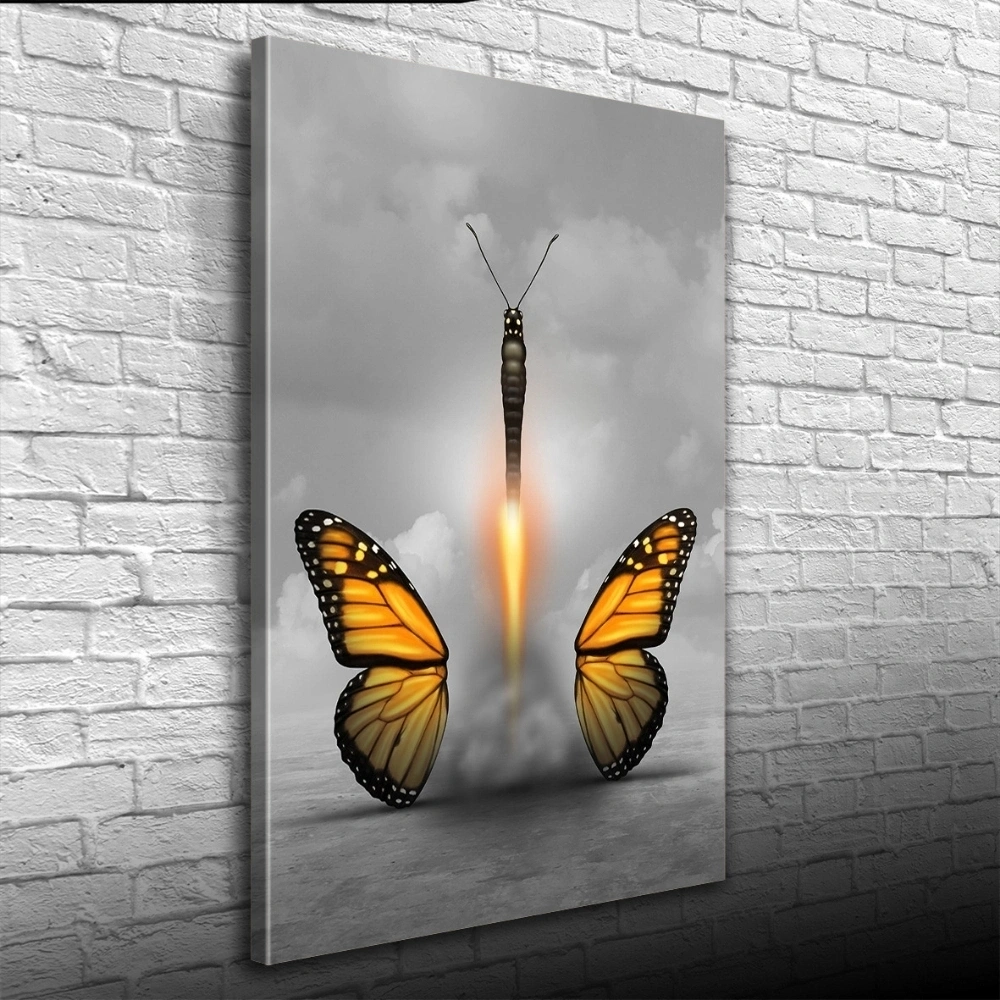 Kelebek Görselli Soyut Çalışma Kanvas Tablo 50 x 70