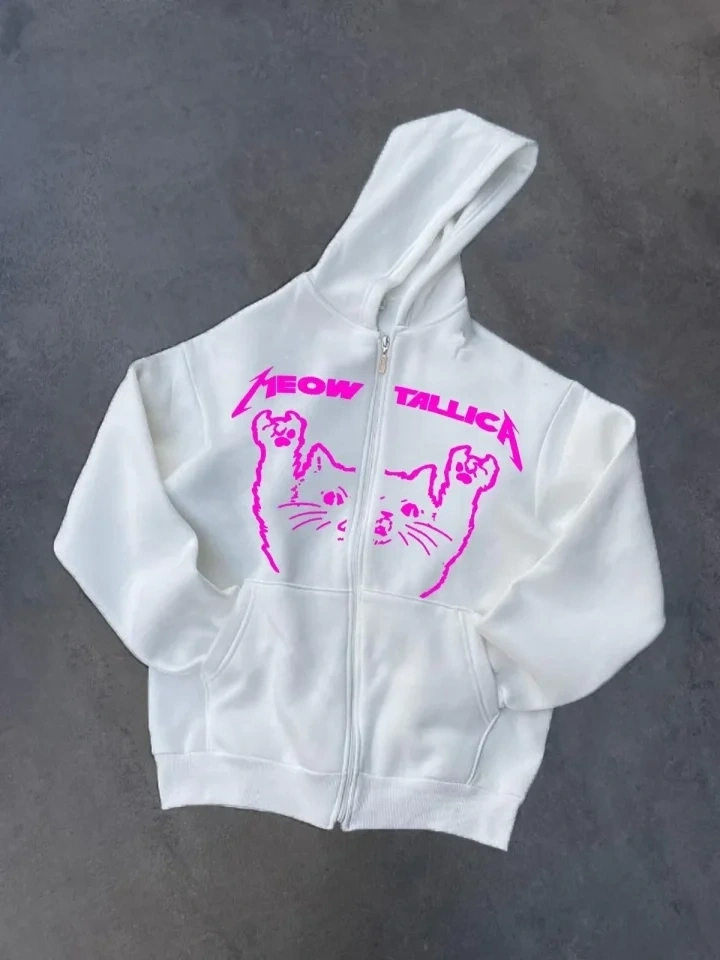 Kışlık Baskılı Fermuarlı Kapüşonlu Hırka - Beyaz