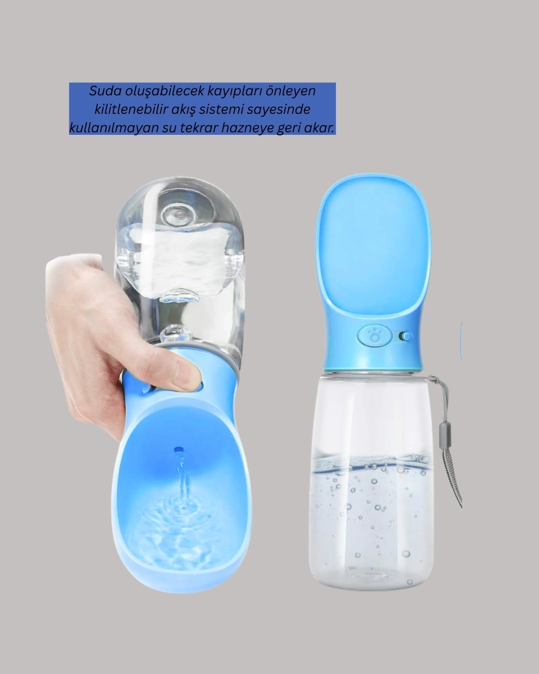 Bu pratik su şişesi, evcil dostlarınızın su ihtiyacını karşılamak için geliştirilmiş büyük kapasiteli bir modeldir. Su tasarruf mekanizması sayesinde, kullanılmayan suyu tek tuşla tekrar hazneye geri alabilirsiniz. Bu özellik özellikle uzun yürüyüşlerde büyük avantaj sağlar.Sızdırmaz silikon contası, kilitli akış butonu ve sağlam gövdesi ile güvenli kullanım sunar. BPA içermez ve suya tat/koku geçirmez. Yürüyüş, koşu, araç içi seyahat ve kamp için idealdir.