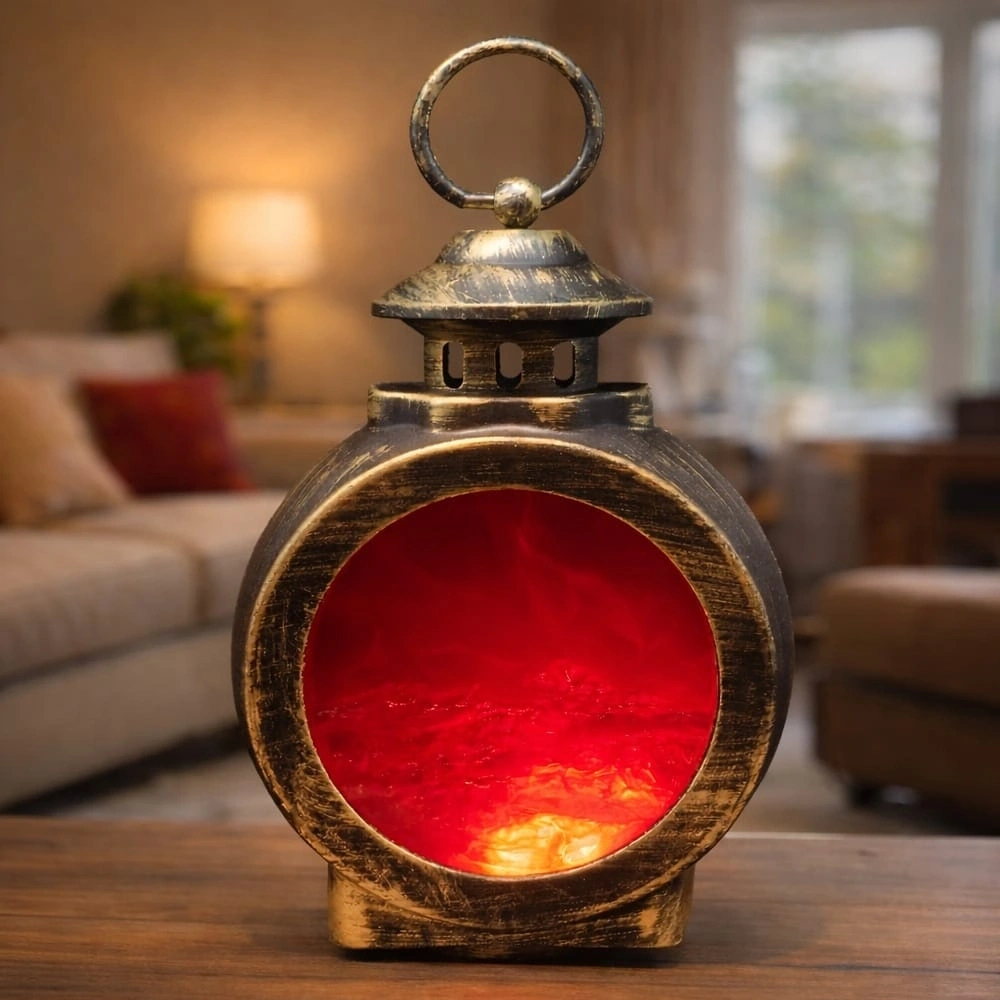 LED Işıklı Alev Efektli Dekoratif Şömine Fener