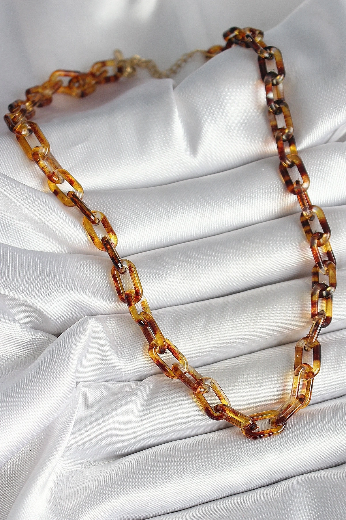 Pirinç Zincir Kehribar Sarı Gold Renk Zirkon Taşlı Y Kolye