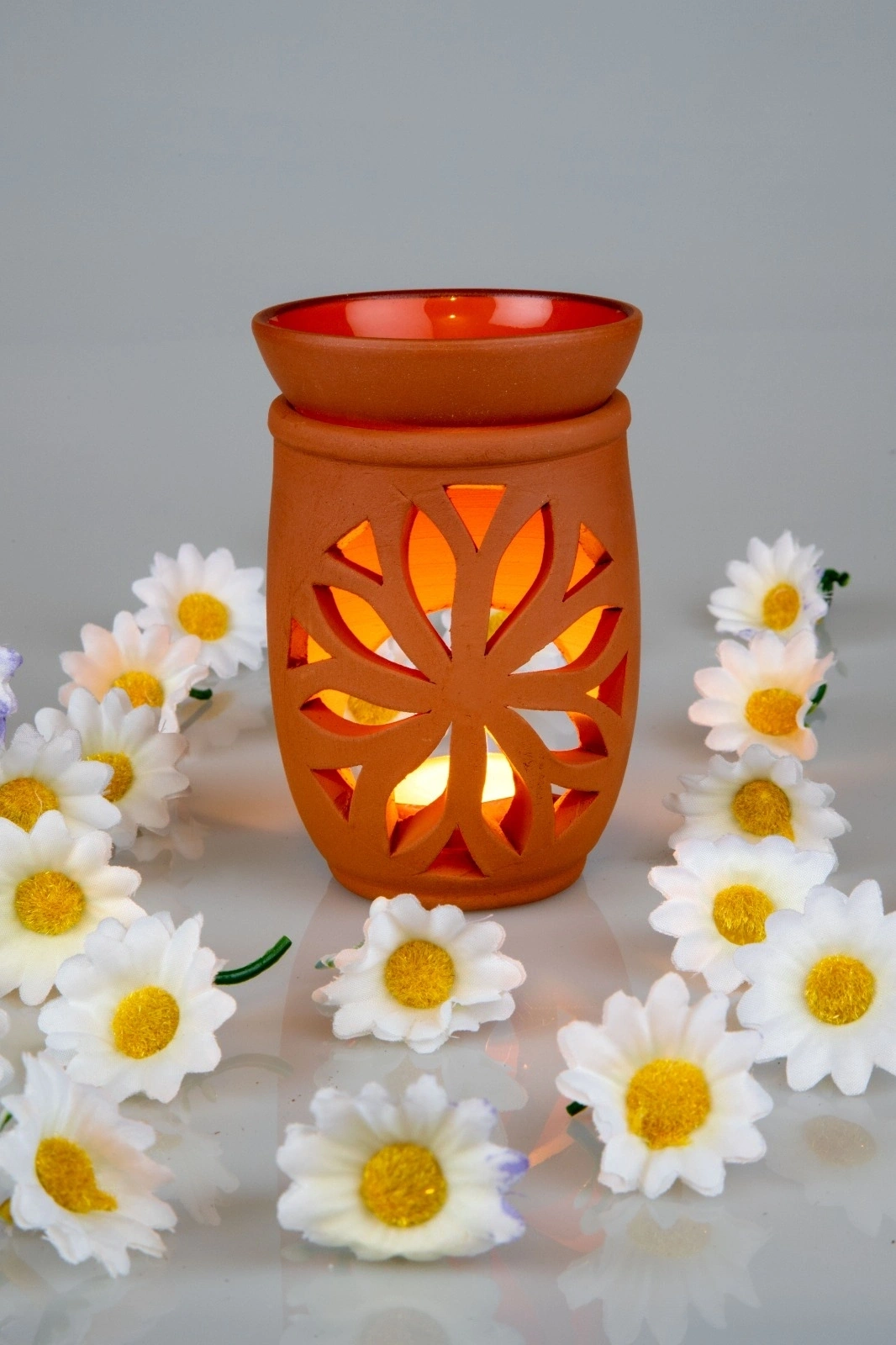 Aromaterapi yağlarıyla kullanılır, altına mum konur, üstüne isteğinize göre aromaterapi yağları,adaçayı veya tütsü koyabilirsiniz üst kısım kasesidir .