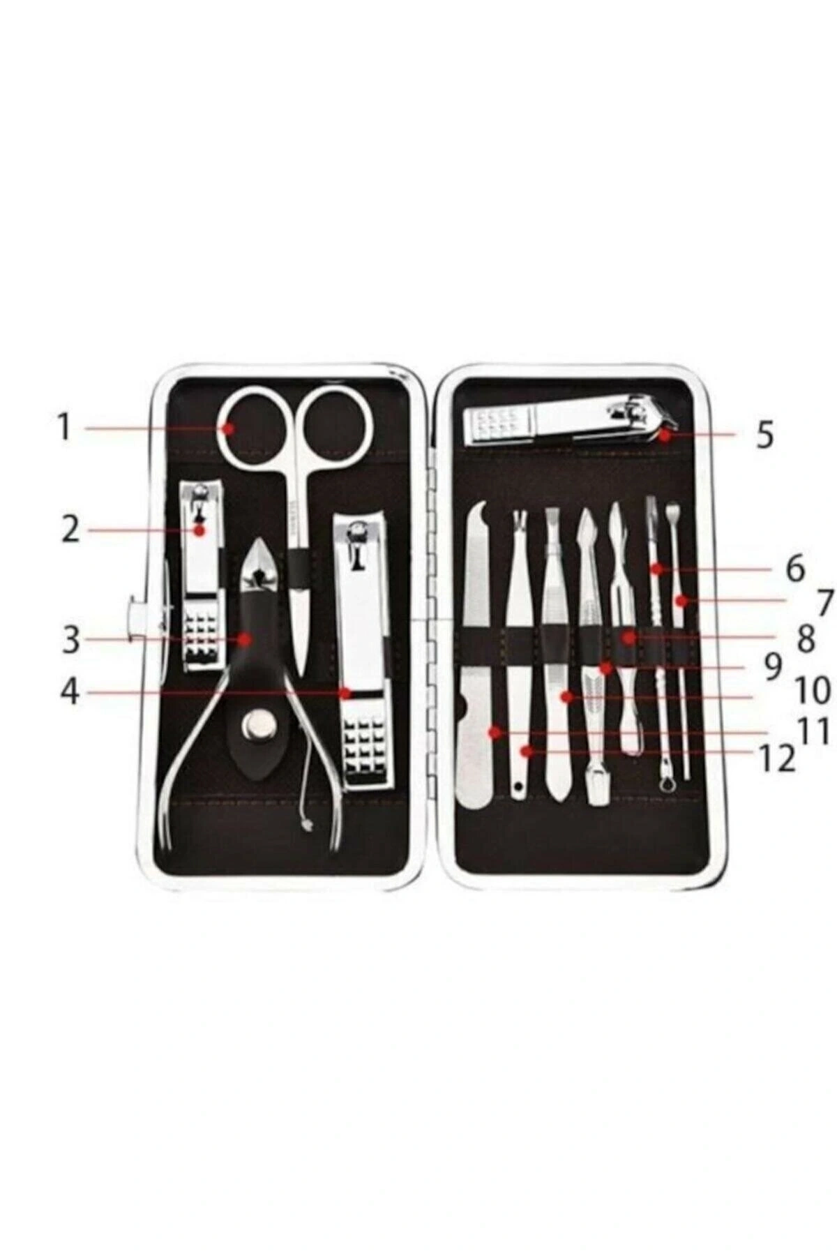 Özel deri çantalı hepsi bir arada setAyak ve el bakımınızı evde kendiniz yapıp kuaför masrafından kurtulun. Tüm aparatları paslanmaz çelikten üretilmiştir.Taşınabilir boyut ile çantanızda rahatlıkla taşıyabilir, seyahatlerinizde yanınıza alabilirsiniz. Paket içeriği: 1 adet kulak çekme1 adet çok amaçlı makas1 adet manikür makası3 adet tırnak makası / düzeltici1 adet pense1 adet kir temizleme1 adet kaş cımbız1 adet manikür bıçağı1 adet tırnak törpüsü1 adet akne iğnesi1 adet deri çanta Bütün ürünlerimiz orijinal ve sıfır ambalajındadır.