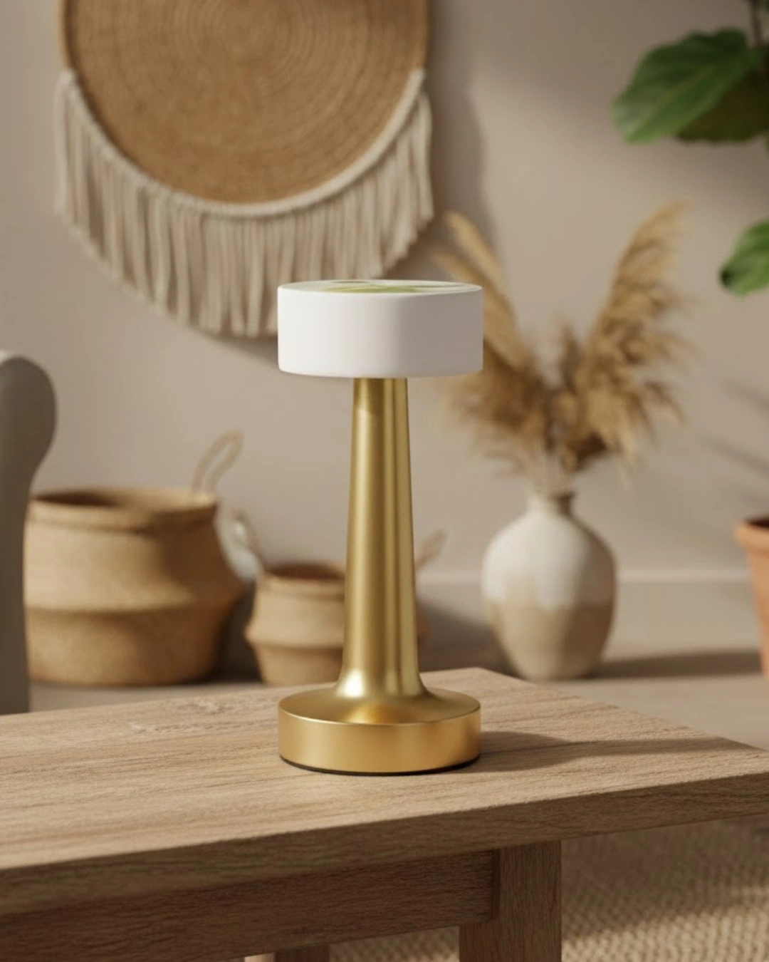 Uzun pil ömürlü şarjlı masa lambası, kablosuz kullanım avantajı ve dimmer özelliği ile öne çıkar. Type C şarj desteği sayesinde hızlı şarj olur. Minimal tasarımı ile modern dekorasyonlara uyum sağlar.