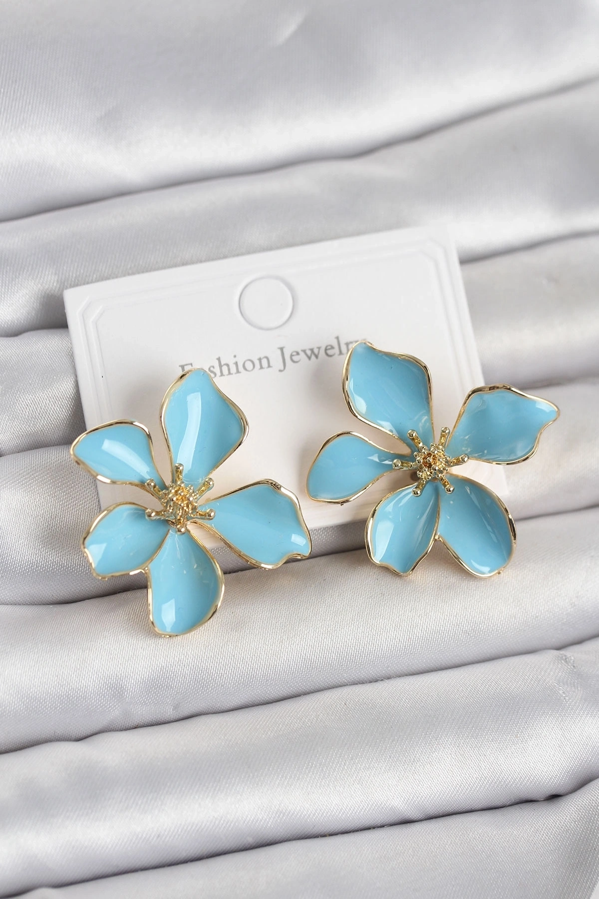 Mavi Mineli Çiçek Model Pirinç Kadın Küpe