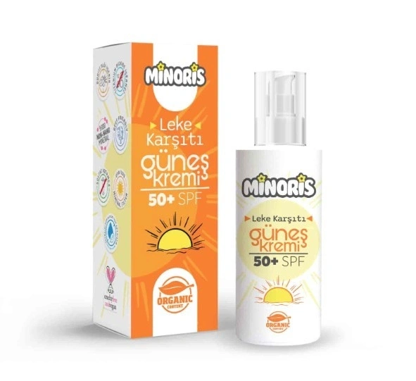 Minoris Leke Eğilimli Ciltlere Özel Güneş Kremi 50 SPF+, Minoris Organik Kimya laboratuvarlarında doğal mineraller ve organik bitkilerin birlikte kullanılması ile ileri teknoloji kullanılarak geliştirilmiştir. İçeriğindeki Organik Aloevera ve Papatya ve E vitamini içeren yüksek etkili 50 SPF+ güneş kremi, UVA ve UVB koruma sağlar. Leke eğilimli ve hassas ciltler için kullanımı idealdir. Cildinizi güneş yanıkları, cilt lekeleri ve erken cilt yaşlanması gibi güneşin zararlı etkilerine karşı korumanıza yardımcı olur. Cilde nem kazandırarak sağlıklı bir bronzluk sağlamada yardımcı rol oynar. Yapışkan his bırakmaz.